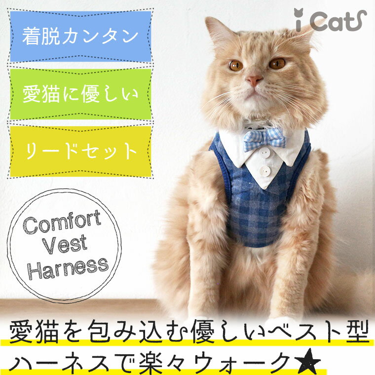 【 猫の首輪 猫のリード 猫のハーネス 布製 カラー 軽量 柔らかい 猫用品 ペット用品 ペットグッズ 猫 リード ハーネス 胴輪 ベスト 猫ハーネス 激安 i dog 楽天 】 ネコちゃんの体型にフィットする、安全で優しいベスト型ハーネスです。