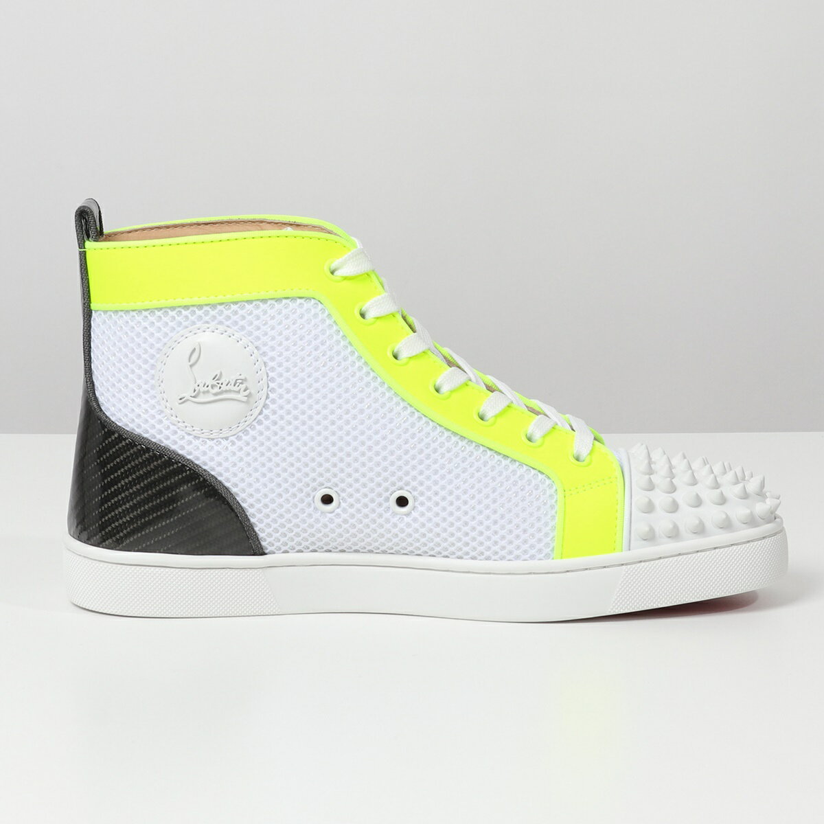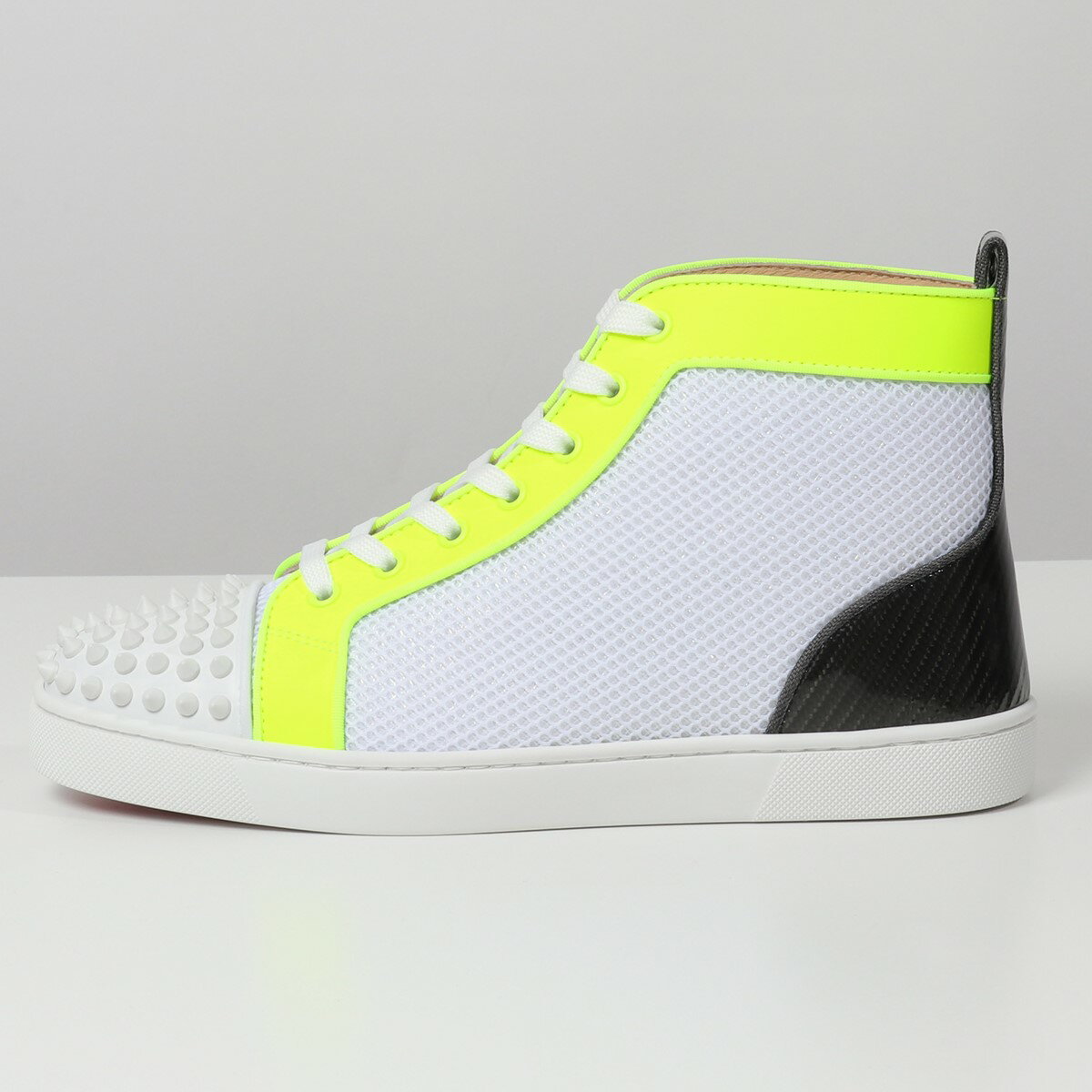 トーンオントーンのスパイクスタッズ、ネオンカラーのイエローラインにラメ入りメッシュ素材、アウトソールはルブタンを象徴する真っ赤なラバーソールデザインとなり、細部までこだわった履き心地の良い仕上がり◎ 【革製品の取扱いについて】※上質な天然皮革を使用している為、輸入時より目立たない程度の微細な傷、汚れ、スレ、シワなどの跡が付いている場合がございますが、素材上の性質とご了承下さい。